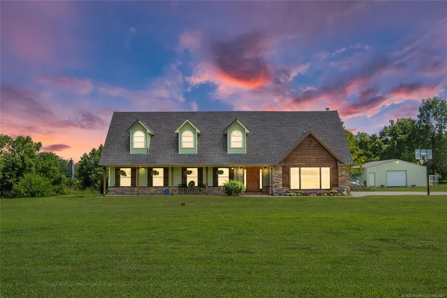 THIS IS IT! Beautiful, custom lodge style home is on 3 acres and waiting for you! Hardwood floors throughout the downstairs, with an amazing GREAT room/living room, with vaulted ceiling and Town & Country fireplace. Kitchen has granite counters and island. Upstairs bonus room being used as 4th bedroom currently. Enjoy the HUGE covered back porch with kitchen. 30'x40' garage shop has 2 OH doors, electric with 220 and 30 amp RV plug. Storm cellar in back yard and on well water. ALL OFFERS DUE 9PM 7/14/2021!