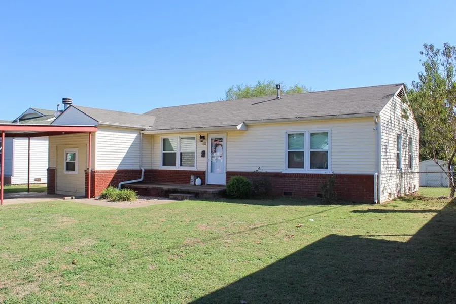 Charming ranch home in a quiet neighborhood located in Bristow just 30 minutes from Tulsa. This home is approximately 1,280 square feet with 3 bedrooms and one bathroom. It boasts 2 living areas, a cozy entry living room as well as a spacious den area with a fireplace and adjacent utility/mudroom. It has an updated kitchen with new cabinetry. The home has nice neutral painted walls with white trim accents. It also has its original hardwood flooring throughout and is in very good condition while the den area has new tiled flooring. The homes' exterior consists of vinyl siding with brick skirting. It has a shingle roof, a covered carport area, a sidewalk from the front entry to the back entry, and a quaint front patio. The large backyard is completely fenced and has a very nice sized 16x16 wooden deck perfect for entertaining guests. It also has a small storage shed with a lean-to. The home also has less than one-year-old thermal windows and a newly replaced heating and air unit installed in February of 2021.