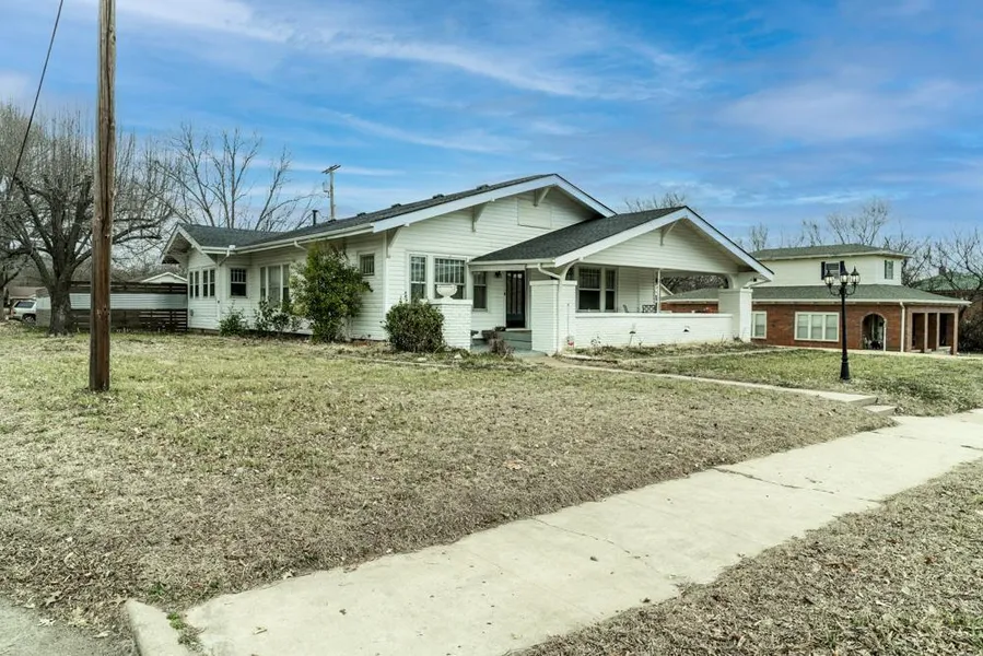 Charming craftsman home conveniently located within 30 minutes of Tulsa in Bristow, Oklahoma. Offering an appealing blend of original details and recent updates. Sitting on a large corner lot on desirable West 6th Street, the home has an amazing curb appeal. Inside are original hardwood floors throughout, built-in shelving, and beautiful molding. The 1,920 +/- square foot home has 3 bedrooms and 1.5 bathrooms, with a formal dining room and office. Spacious rooms and elevated ceilings throughout. A detached garage offers plenty of space and lots of storage options as well as an attached efficiency apartment!