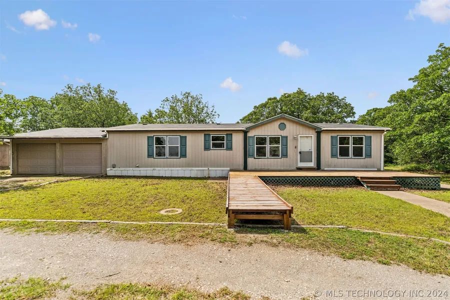 Welcome to your outdoorsman's dream retreat! This charming property offers a unique opportunity to own a 3-bedroom, 2-bathroom Palm Harbor factory-built home nestled on a serene wooded 10-acre lot. Upon entering, you'll be greeted by the expansive cathedral ceilings that create a sense of spaciousness and airiness throughout the home. Situated on a tranquil country road with a circle drive, this home provides a peaceful and private setting, perfect for those seeking a quiet escape. Featuring a storm cellar for added safety and convenience, this property is designed to provide peace of mind during inclement weather. The convenience of Mannford schools and a bus route nearby ensures easy access to education for your family. Nature enthusiasts will delight in the abundance of wildlife surrounding the property, making it an ideal haven for outdoor lovers. With all appliances included, a 2-ca...