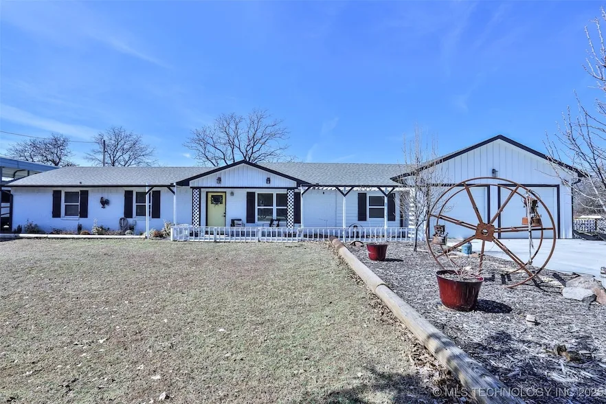 This exceptional property located in Bristow, Oklahoma, offers a unique blend of comfort, convenience, and outdoor living. Strategically positioned off I-44 and Old Highway 66, this residence provides easy access to the Turner Turnpike, making it an ideal home for those seeking both privacy and proximity to key travel routes. This beautiful home features five spacious bedrooms and two and a half bathrooms. This home has been thoughtfully designed to cater to modern living needs. The kitchen is any chef's dream. En Suite: The master ensuite is a sanctuary of its own, complete with double vanities, a large walk-in closet, a freestanding tub, and a walk-in shower. This private oasis provides the perfect place to unwind after a long day. The home includes a mudroom, and a dedicated laundry room equipped with a sink, enhancing its functional appeal. A water softener and a tankless water heater add to the home's efficiency and comfort. Set on a generous one-acre lot, this property is designed for outdoor enthusiasts. Equipped with an RV cover that is 16x45, 12x20 side carport, a 12x16 boat cover, and a 10x10 shed, ensuring ample storage for vehicles and equipment. Additionally, a 12x24 front shed with water, electric, and storage. A 10x25 greenhouse, a rain barrel, and a man-made pond support sustainable living and gardening endeavors. The property borders 190 acres of Indian-owned land. The home's proximity to major highways offers residents quick access to nearby cities and attractions while enjoying the peace and quiet of a rural setting. With its combination of indoor luxury and outdoor amenities, it offers a unique living experience that caters to a variety of interests. Whether you are a growing family, an outdoor enthusiast, or someone looking for a serene retreat. Come see your new dream home!