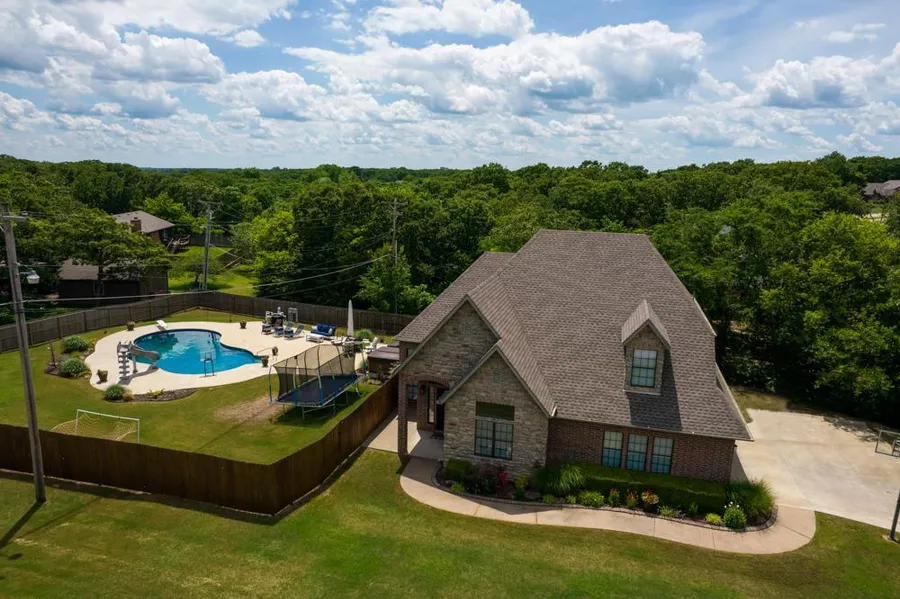 As you enter into this stunning, brick 2,474 square foot, two-story home, you will find a modern farmhouse open concept living room, kitchen, and dining room. On the first level of the home is the master bedroom and bath, laundry room, kitchen, dining, pantry, living room, office, half bath for your guests, and a two-car garage. From the entry, you will find a beautiful staircase that will lead you up to the second level. The second story features 2 bedrooms, a full bathroom, storage room, media/game room, and attic. From the dining room area, you have the ability to go straight out to the covered patio. From the patio, there is a four person hot tub, year-round (heated ability) in-ground pool, and plenty of yard to play in. The in-ground pool features a diving board, slide, basketball goal, and colorful lights for night swimming. The yard is completely fenced with a newer privacy fence to allow for seclusion. Call Whitney Geyer today at (918) 807-6959 to schedule a showing.