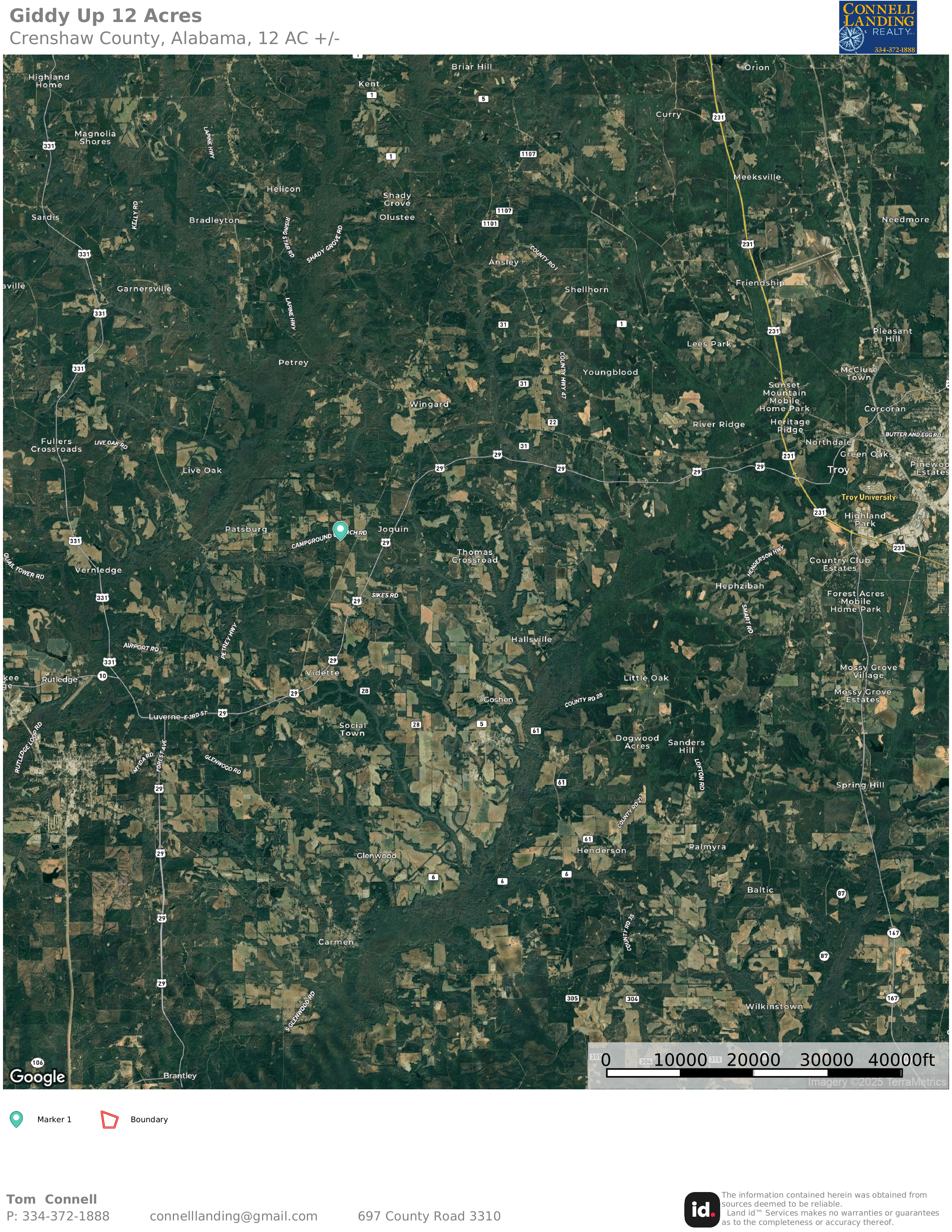 Location: This property is 7.5 miles northeast of Luverne and 12.7 miles west of Troy.