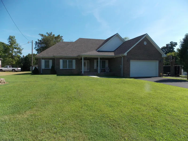 Brick home built in 2009, with 3 Bedrooms, 2 1/2 baths, large den w fireplace, full kitchen with breakfast area, all appliances stay in kitchen, master bedroom with large master bath and walk in closet. Study with an 1/2 bath that can be used as TV or computer/office room. Two other bedrooms are off the kitchen with another full bath. Large attached two car garage, covered porch on the back of the home overlooking the back yard and remaining acerage. Included with the sale of this home is a shop building with 3 bays, large work area, front of building could be used for commercial/Retail use, building according to PVA is over 3500 SF. Remaining acerage is wooded and is abundant with whitetail deer and wild turkey.