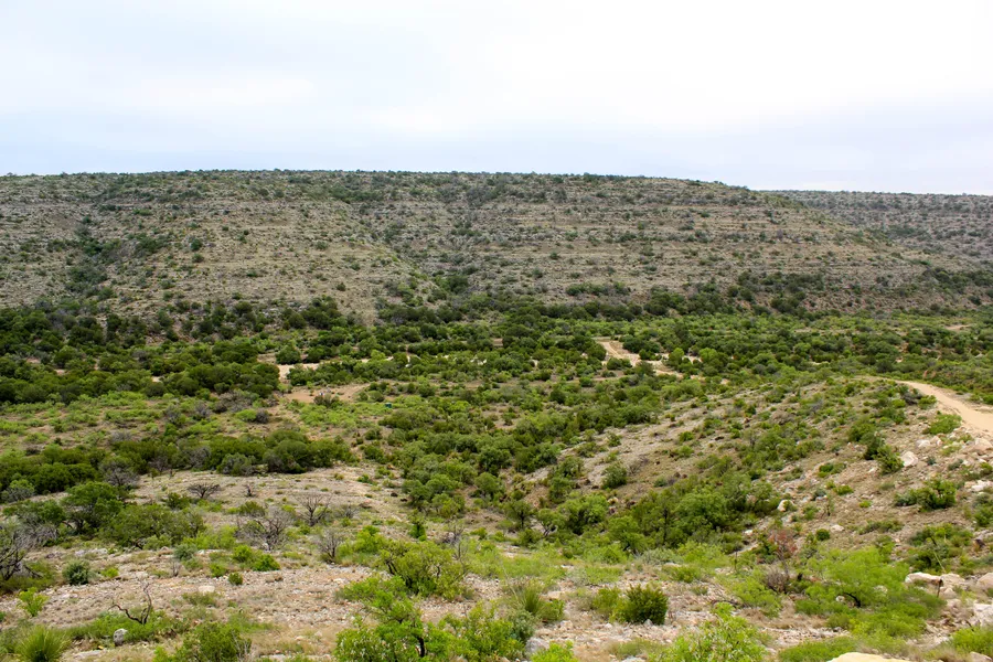 shin oak and mesquite trees on the ranch with all grasses being native to the area.