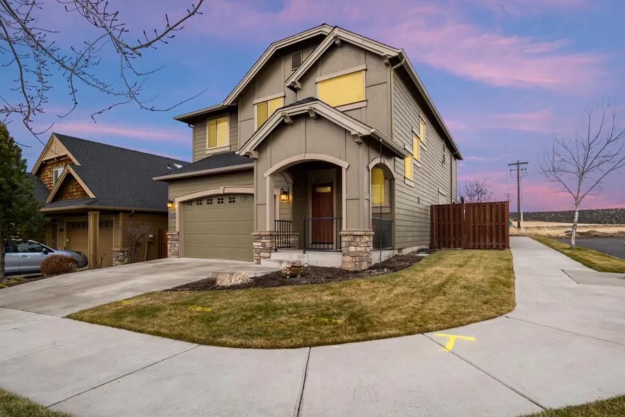 Immaculate Craftsman home on corner lot in Ochoco Pointe with expansive views of Barnes Butte to the East. Spacious open floor plan offering 4 bedrooms, 2 1/2 bathrooms, 2031 Sq Ft built in 2006. Kitchen has large island w/ gas range, eating bar, tile counters, pantry and hardwood flooring. Dining area is open to spacious living room w/ gas fireplace & stone surround. 2nd level features primary bedroom & bath w/ lg walk in closet, 3 additional bedrooms & main bath plus utility room. Enjoy additional outdoor living on the private covered patio w/ two landscaped lawn areas within the fenced backyard. Community amenities include seasonal swimming pool, parks, play areas, sports court, walking paths and wetland reserve w/ access to public & BLM trails around Barnes Butte. HOA includes front yard maintenance. Move in Ready!