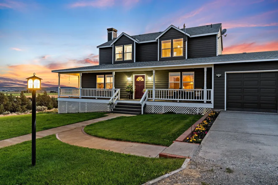 Beautiful Farm Setting North of Prineville perched on a knoll above the irrigated valleys below. 103.13 Acres includes 2 parcels, with 20 ac pasture irrigated with wheel line & hand lines. Nicely built custom 4 bedroom, 3 bath, 2151 sq ft home constructed in 1991. Amazing Cascade Mt views from the lg country kitchen featuring hardwood flooring, white cabinetry, eating bar & pantry. Adjacent Dining room has access to lg open deck on the west, great to take in the beautiful sun sets! Main floor also includes spacious living room w/Lopi wood stove, utility room & bedroom/office. 2nd floor has master bedroom pus extra bedrooms w/Jack & Jill bathroom & office. Several outbuildings including newer pole barn w/4 open bays could be barn, workshops, one w/cement floor & RV door. RV area w/hook up. Gated & partially fenced, perfect for animals.