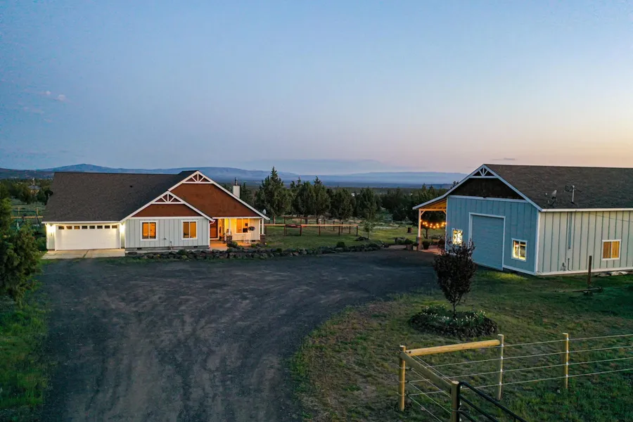 5 Acre horse property that boasts a stunning custom home 4 bed 2 bath, large shop with 1 bed 1 bath guest cottage/ADU, 3 fenced fields & corral/arena, hay storage, animal stalls, fenced backyard for pets and so much more. This breathtaking setting offers privacy and lots of usable space to enjoy. The main home and guest cottage is situated perfectly to take in the expansive views of the Cascades for that majestic big sky feel. The main home welcomes you with rich charm and character, with beautiful modern updates throughout. The floor plan features ample living space and great flow. As you walk in the entry it is bright and open, the great room is perfect for your large family gatherings and entertaining experience. It is said the kitchen is the heart of the home and boy are you in for a treat! Fully remodeled with beautiful finishes, stainless steel appliances with an induction oven, huge kitchen island and solid surfaces. The primary suite is luxurious with bonus room.
