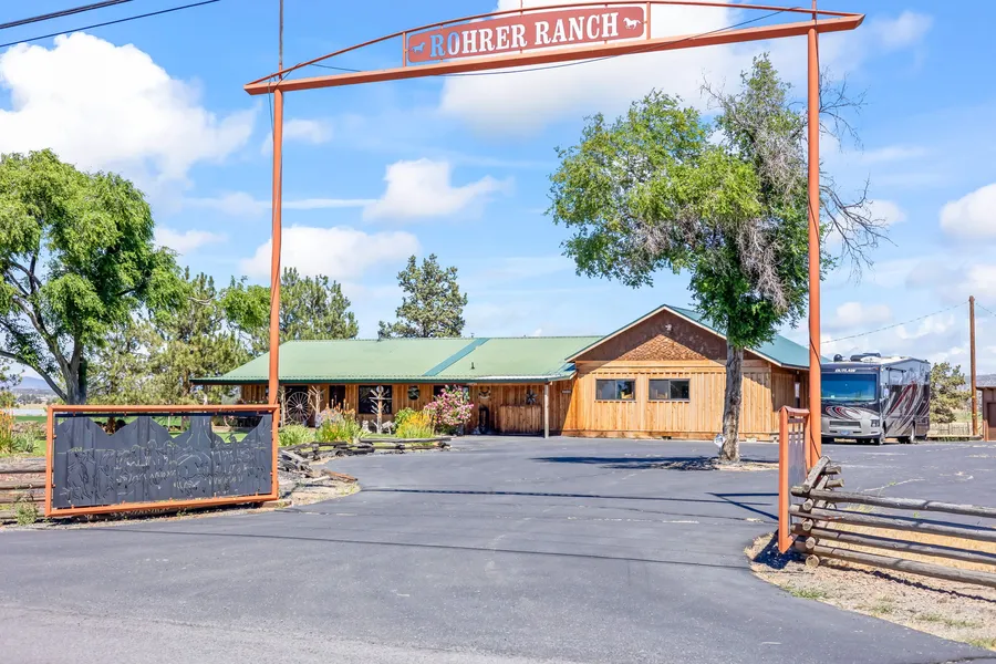 This property not only has everything Powell Butte has to offer but more. For starters the 3032 SF home features 3 bedrooms, 2 full baths & 2 half baths. Great room concept w/large breakfast bar, spacious dining area & kitchen built to entertain. Kitchen includes 6 burner range w/double ovens, granite counters & enormous butler's pantry w/ additional work space. Primary bedroom is large w/ room for exercise equip. & existing sauna. In addition there is a large, vaulted game room w/outside access & it's own bathroom. Perfect space for dual living. For the occasional guest you have a 2 bedroom guest house w/ full bath. Under 3000+ SF of roof is a shop w/110, 220, & 3 phase power, & large walk in freezer. Plenty of space for projects, classic cars or maybe a business? 74 acres w/ 65 acres of gravity fed, flood irrigation. No pumping charges. The property is fenced & cross fenced with barn w/hay storage & 5 stalls. Paved drive & ample parking. Fabulous mountain views!