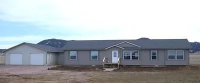 HILLSVIEW PROPERTY – Sundance, Crook County, Wyoming: Beautiful, 2008 Presidential Series Champion modular home with 2,075 sq. ft., central air, three bedrooms, two full baths, spacious living room, dining room, and utility room. It also has an 8’ x 16’ finished and heated mud room connecting the house with the new, attached 28’ x 32’ insulated and finished two-car garage. The home features two wood decks - front deck is 8’ x 10’ with an 8’ x 16’ deck off the back. Landscaped yard with tree shelter belt. There is a 12’ x 40’ horse barn with 10’ x 12’ enclosed tack room as well as corrals made of continuous steel fence. All on 10± acres in the Hillsview Subdivision located five miles south of Sundance, Wyoming along US Highway 585. Ready for you and your horses! Price: $249,900