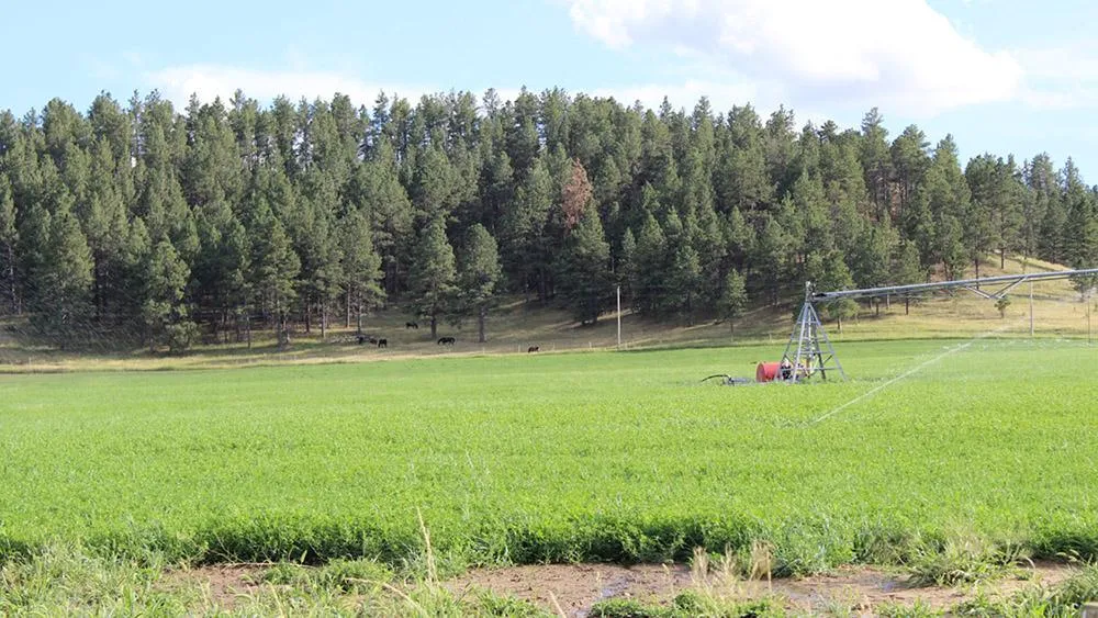 This small, productive ranch, located in the beautiful Black Hills of Wyoming, consists of 163 deeded acres with 76 acres under pivot irrigation that produces about 200 tons of hay per year. This beautiful and scenic ranch features a very nice, five bedroom, 3-1/2 bath home built in 2005 that has geothermal heat produced from a new artesian well on the property. This well produces 1,150 GPM with approximately 40 pounds of pressure and also supplies irrigation water to the 2005 T&L center pivot. There are several outbuildings including a 34x40 three car garage, 40x54 pole barn/shop, 34x60 livestock barn, 40x60 open-face shed, grain bin, 30x40 old livestock barn with hay mow, 24x40 open-face livestock shed, and a chicken coop. The property also has a large, enclosed garden. Turkey and whitetail deer are abundant on the property. Price: $1,100,000