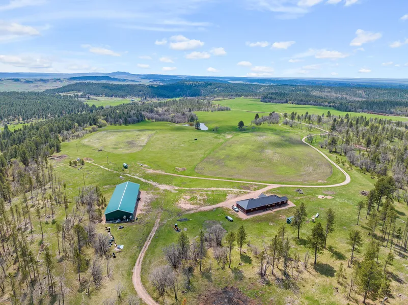 The 2,238 deeded acre ranch is located about 8 miles NW of Sundance Wyoming in the Black Hills National Forest at an altitude of 5,500' about one hour W of Rapid City SD on I 90. The name Sundance evokes images of rowdy Butch Cassidy and the Sundance Kid leading the wild bunch out of Wyoming on the longest stretch of bank and train robberies in history of the Old West. The name Sundance also summons up visions of Native American tribes camped at the base of nearby Sundance Mountain in the mystical Black Hills where they performed their sacred Sundance. This region is where the North American Tribal and Cowboy cultures grappled in a historic collision course. In these rolling hills covered with Ponderosa Pine, Aspen & Oak, the family has aggregated 5 ranch parcels providing the beautiful setting for their brand-new western cabin about 3,578 SF, 5 new hunting cabins and 3 new pole barn shops located strategically across the ridge lines, meadows and forests. South Miller Creek meanders through the ranch. At dawn and dusk the ranch meadows are traversed by cattle, elk and deer with Boone and Crocket class bulls and bucks, stalked by mountain lion and an occasional bear. Turkeys, upland game birds and waterfowl are common sights. The mountain meadows support about 200 cow/calf pairs, stocked through a seasonal lease with a ranch neighbor. The ranch owner has built high quality new corrals for working the cattle and for shipping. About 20 miles of mostly new fences enclose the ranch boundaries. Cattle are rotated through fenced pastures. To help disperse the cattle, 8 new stock watering tanks are distributed across the ranch supplied through about 5 miles of underground water lines. The water is pumped from a spring at the valley floor to a holding tank at the ranch high point. From that high point the water gravity flows to the strategically placed stock tanks that operate with solar panels to control the rate of water flow. Up there, Devils Tower, the Nation's first National Monument is visible about 8 miles to the NW as the raven flies. Two new shops are located in convenient locations at the North and South ends of the ranch, to support the ranch operations. Profitable timber harvest operations on the ranch have thinned the beautiful ponderosa pine forests. The dozens of high mountain meadows provide hardy high altitude grass as feed for the cattle and abundant wildlife. The mix of meadows and forest provide excellent cover for the wildlife. The ranch manager wrangles horses for cowboying, hunting and trail rides on the remarkable ranch trail network, winding about 20 miles on various routes across the ranch to the Black Hills National Forest, which offers several hundred thousand acres of recreational opportunities throughout the 4 enchanting ranch seasons.