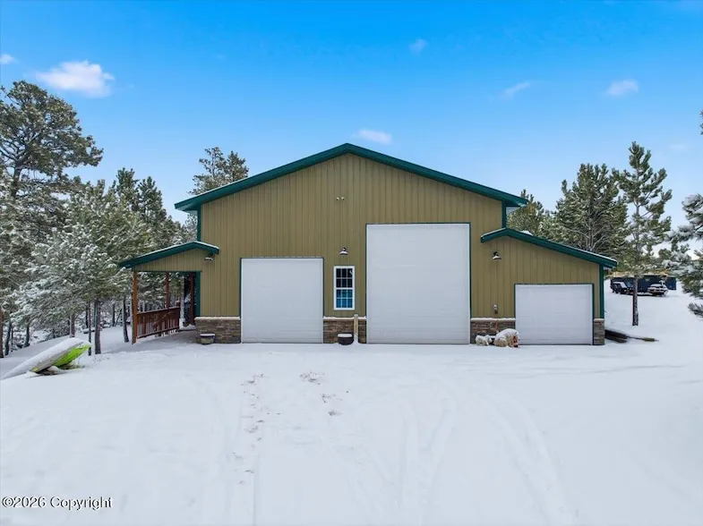 New Well, New Shop expansion, New Wainscoting, New driveway parking pad- all this at your very own paradise in the trees in Sundance. Enjoy sunlit meadows, private forested trails, sweeping 360 views, and peaceful mornings on the covered porch as the pines whisper around you. This beautifully customized shop home offers main-level living with optional dual primary suites, a fully custom kitchen with hand-crafted hickory cabinets, and 2,035 sq ft of shop space. Upstairs features a kitchenette for added flexibility, while a full RV hookup expands the possibilities vacation rental, guest retreat, or hobby haven. Professional fencing, improved access roads, and NRCS-supported timber thinning round out this private location at the end of a well-maintained four-season road, just minutes from Sundance or Upton. For more information, call/text Laura Pinkerton with Signature Real Estate Group at 307-670-1180.