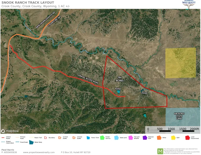 The far southeast corner of this property corners approximately 640 acres of land locked Wyoming State Land.