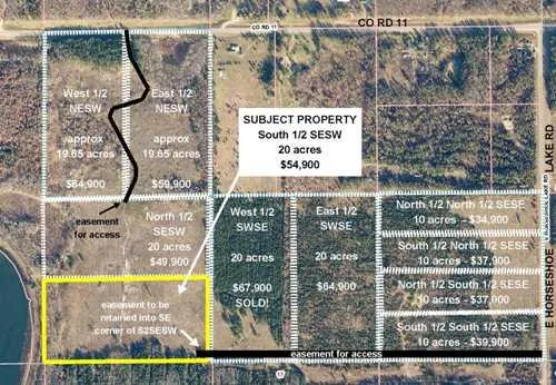 Centrally located 20 acres near Breezy Point, Crosslake, and Merrifield. Mostly open level upland with mature Aspen and Jack Pine along the west and south boundaries. Access is via an easement to be granted from E Horseshoe Lake Rd through adjacent property to the east, only 1/2 mile from the paved public road. Easement to be retained in the southeast corner (likely the south 33 feet of the east 33 feet) of this tract to provide access to adjoining land to the south. Greenwood (Lizard) Lake is to the west. Public accesses to Pine Lake, Pelican Lake, and Ossawinnamakee Lake are all less than six miles away. Fawn Lake, Horseshoe Lake, and Pelican Brook are also nearby. Near Crow Wing County Memorial Forest and only half a mile from Crow Wing State Forest boundary. Additional land is also available (MLS# 203449, 203450, 203454, 203456, 203460, 203462, 203464, 203466, 203468).