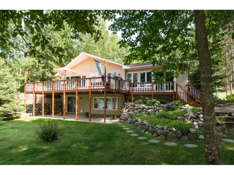 Scenically supreme lakefront living on a quiet bay of Ossawinnamakee Lake. 100 feet of shoreline with a sandy bottom lake. Home is tucked away on a private road and provides endless views of the lake and nature off the deck, porch area and lower level patio. Main level living is an attraction with plenty of space for guests and family. Enjoy the view of the water and landscaped flower gardens out the patio door in the sun room. Location is close to Golf, trails, lakes and medical facilities.