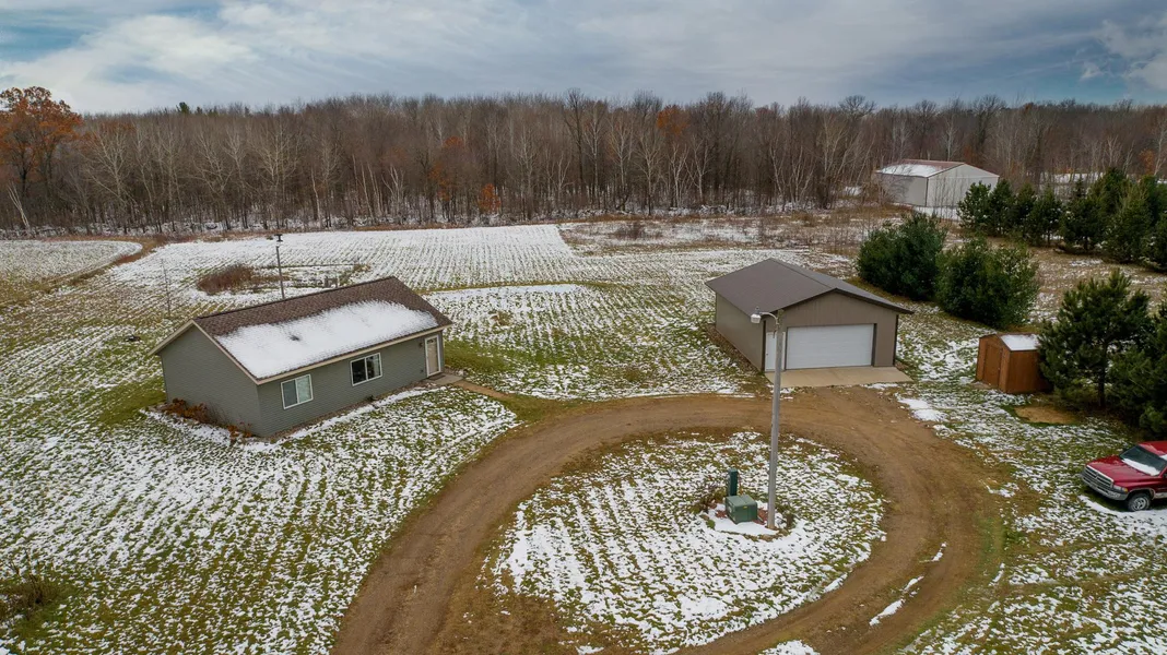 Private 10 acres surrounded by woods and fields. Enjoy this 1 bed 1 bath slab energy efficient home with a 24x36 garage, laminate flooring, large bedroom with walk in closet, hundreds of trees, garden and wildlife galore. Land features 5 acres of open space and remaining 5 acres of hardwoods for hunting or hiking. You will not find a cleaner or private home like it. Book your showing soon because this will not last long.