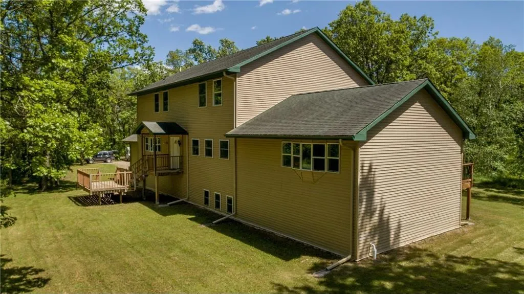 This stately two story home is nestled on 15+ high and mostly wooded acres. Home boasts great room with 2nd floor overlook. Main floor master suite has large bathroom with soaking tub and tile shower. 3 huge bedrooms upper level have walk-in closets. Main floor has large den/office, formal dining area and an amazing kitchen to entertain. Full basement can be used for recreation area or future expansion. Enjoy wildlife on the large deck that overlooks pond. This property offers so much; including a 23x35 storage shed and a playset that would entertain the kids for hours!