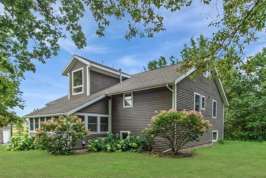 County setting in City limits, this beautiful and well designed home has 4 bedrooms and three baths. Main level features three season porch, open floor plan with hardwood floors throughout, 2 bedrooms with walk-in closets and bathroom, living and dining room, and a well designed kitchen w/island, and patio doors accessing spacious deck overlooking acreage. Lower level has large bedroom with patio doors, walk in closet, and huge family room, complete with full bath. Upper level has large hobby/bedroom/office area and 1/2 bath. Detached 24 x 48 garage is insulated with front and side load garage doors-plenty of room for the cars and recreational toys! Subject to new split. Option for 120x60 commercial building on approximately 2 acres.