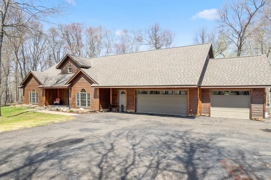 Welcome home! This stunning property is nestled in the serene rolling hills of Breezy Point and surrounded by mature oaks, birch, and pine trees. This immaculate home boasts luxurious interior finishes, including granite counters with a gold accent backsplash, log accents throughout, ceramic tile flooring, a gas fireplace, in-floor heat, and vaulted oak T&G ceilings. The master suite, walk-in closet, and bathroom will take your breath away! Unwind in the private sauna or entertain guests on the expansive back paver patio or the screened-in pavilion with a fireplace. In-ground sprinkler, three detached garages and an attached three-stall garage, you'll have eight garage stalls - plenty of space for all your vehicles and toys. The property is situated on just under 20 acres, providing trophy white tail hunting and a peaceful and private retreat from the hustle and bustle of city life. Clos...
