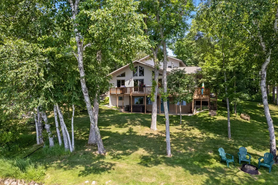 Experience the epitome of lakefront living on the breathtaking shores of Ossawinnamakee Lake! This exceptional walkout features six bedrooms, including two primary suites, and five bathrooms. Embrace productivity in the dedicated office space and unwind in the soothing sauna. The new roof, installed in June 2022, ensures worry-free living, while the oversized two-stall heated/attached garage provides ample storage. Total home renovation and addition was completed in 2004. Listen to the loons on the wrap-around deck, savoring the gradual elevation of only six feet down to the lake. With vaulted tongue and groove ceilings, a cozy gas fireplace, and impeccable craftsmanship, this is lakefront living at its finest. Close to golfing, fine dining, and entertainment. Ossawinnamakee Lake offers some of the best fishing and recreation in the area. Don't miss the opportunity to own your lakeside haven!