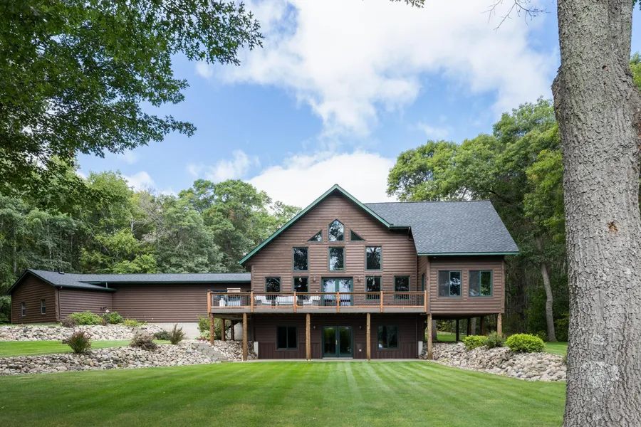 5 bedroom 3 bath, soaring vaulted ceilings, hardwood floors, loft master overlooking the lake, open concept with gorgeous kitchen, sunroom, new roof, log siding, full finished lower level, heated attached shop, 30x40 Pole Building with concrete floor. The is a one-of-a-kind property with acreage, lakefront, and a spectacular home with an access of square footage!