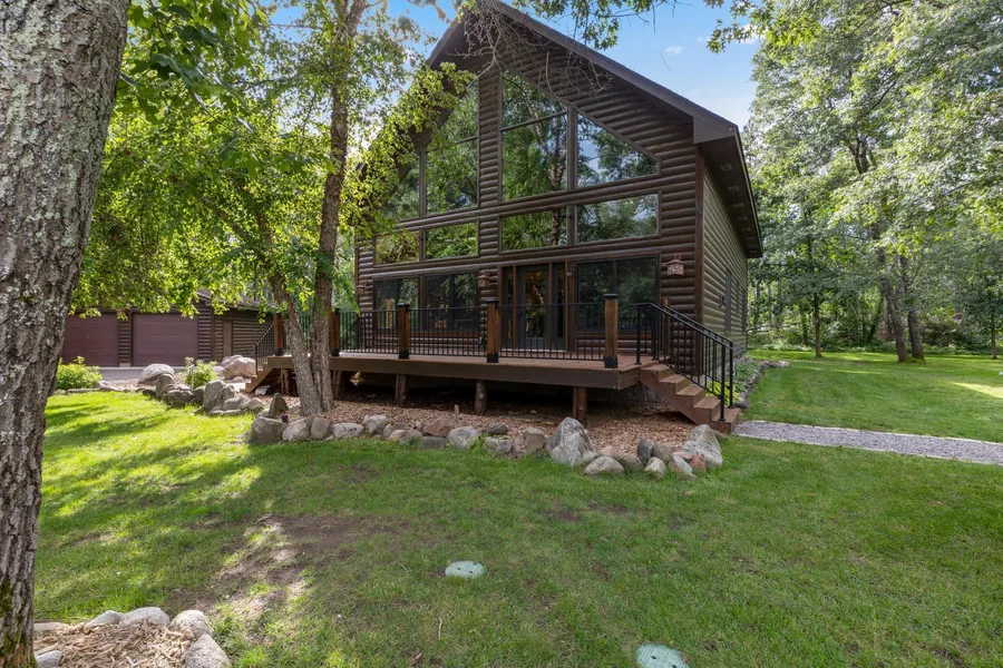 This stunning log-sided home is situated on over 2.5 acres, offering exceptional privacy across its three lots. The residence boasts numerous updates, featuring vaulted ceilings, a lovely master bath, hardwood floors, and a detached double garage with an additional shed for storage. The blacktop driveway leads to a spacious deck off the kitchen, perfect for outdoor enjoyment. The beautiful loft, complete with a wet bar, provides an ideal space for entertaining, a game room, or a potential master suite. The home also includes a gas fireplace with custom stonework, adding to its charm and warmth. Additionally, the basement offers an extra family room or movie room, with the potential to add a fourth bedroom. Located in the desirable Breezy Point area, you'll have access to fine dining, golf, entertainment, and more. Both Pelican Lake and Ossawinamakee Lake are just a short drive away, offering outstanding fishing and recreational opportunities.