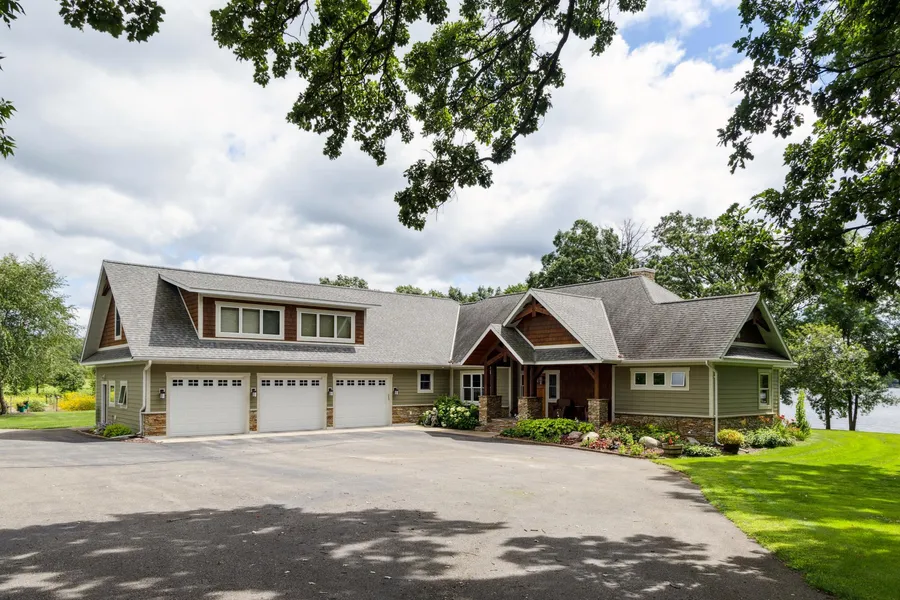 Introducing a rare combination of land and waterfront. This 2012 custom-built Baratto Brothers Construction home on Grave Lake has nearly 32 acres and 652 feet of level shoreline. Features include four bedrooms, four bathrooms, beamed ceilings, reclaimed hardwood floors, wood-burning fireplace, gourmet kitchen with granite countertops, and high-end appliances, lakeside primary suite, main floor laundry, attached oversized three car garage with in-floor heat, massive 48 x 120 foot Morton building, additional 36 x 40 storage building and year-round 1,440 square foot guest cabin. This house is fabulous for entertaining, allows you unparalleled privacy, amazing lake views, everything you’re looking for in your up-north retreat.