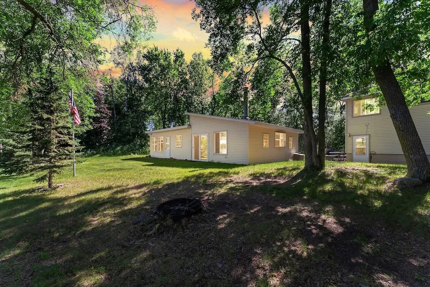 This lakeshore property on Crow Wing Lake is unique, offering a two-bedroom, one-bath cabin and an additional two-bedroom bunkhouse on a private peninsula spanning 1.71 acres. The original land has been owned by the same family since 1956, the cabin was built in 1962 and has since been expanded. The garage and bunkhouse was built in 2003. It's worth noting that the bunkhouse does not have heat or plumbing.Septic is compliant. It is important to use the "as is" addendum in supplements as the seller won't be able to make any repairs. The estimated market value of the property in county tax records is $626,000, and the dock will remain with the property.