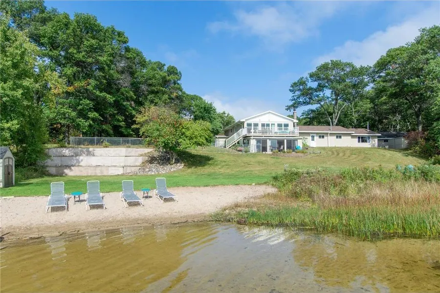Welcome to your dream lake home on Red Sand Lake – a private paradise offering 242 feet of pristine, sandy lake frontage and 1.38 acres of beautifully maintained land. Wake up to breathtaking sunrises and sweeping lake views in this spacious 5-bedroom, 3-bath home, thoughtfully updated and loaded with amenities for year-round enjoyment. Exterior Features: Crystal-clear lake frontage with a sandy bottom – ideal for swimming and water sports, Outdoor pickleball/sport court for active living, Expansive deck spaces perfect for entertaining and relaxing, Firepit area with new rock, tarp, and edging (2021), 2-car heated/insulated attached garage + 2-car detached garage, New roof (2023) and fresh exterior paint (2021), Gutter guards installed (2023)