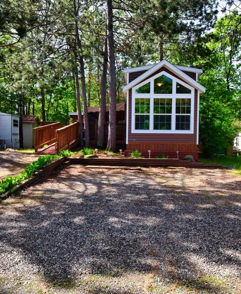 Welcome to Whitebirch Cluster 2! This seasonal resort, open April-November, offers lake access on Pelican Lake with docks and a beach just a short golf cart ride away. Included in the sale is a 2019 Skyline Shore Park 1964CTP model, an air-conditioned bunk house, and a storage shed. The 35-ft park model features a modern open layout with a spacious kitchen island, living room with a fireplace, full bathroom with a shower and tub, and a large loft. LED lighting throughout. Enjoy the large deck connects bunk house, park model with a covered screened-in area. Resort amenities include an inground pool, hot tubs, playground, game room, party room, laundry, shower building, frisbee golf, tennis/pickleball courts, and basketball. Located near Breezy Point Gates, you'll have access to dining, world-class golf, and healthcare. Pelican Lake and Paul Bunyan Trail offer endless recreational possibilities. Don't miss this chance to own a piece of Breezy Point paradise, set up your showing today!