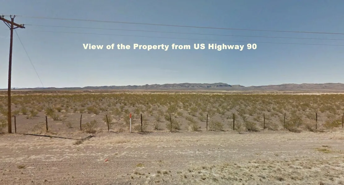 Ranch / Home Site with road frontage on US Highway 90 and close to the Van Horn Mountains. Located about 20 miles South of Van Horn. Power and Phone Lines run along US Highway 90 and are available for easy hook-ups. There are No Restrictions: Mobile Homes, Modular Homes, and RV's are all allowed. There are No Time Limits on when to build and there are No Association Fees. You can also camp on your property while you visit the sites in the area.