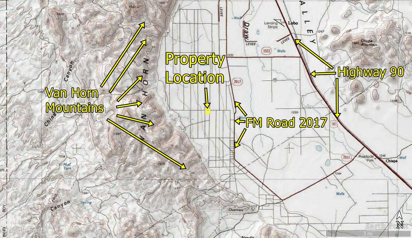 This is a gorgeous approximately 10 acre home site/ranch/recreational property close to the Van Horn Mountains in the Lobo Valley area of Culberson County. The mountain views are fantastic, the area is beautiful and peaceful. There are dirt roads along the platted easements on three sides of the property, and FM Road 1437 is just over a 1 mile drive away.