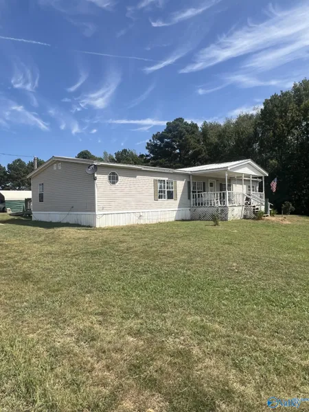 Mobile home sitting on three acres located outside the city limits of Arab. Home has large living room with vaulted ceiling and fireplace. There is a formal dining room and kitchen with island, stove, dishwasher and refrigerator to remain. There is a large laundry room just off the kitchen with a laundry sink and access to the large deck. There is a split floor plan with a total of four bedrooms and two- and one-half baths. Per seller, HVAC is 3-4 years old. Detached covered carport on concrete pad will remain.