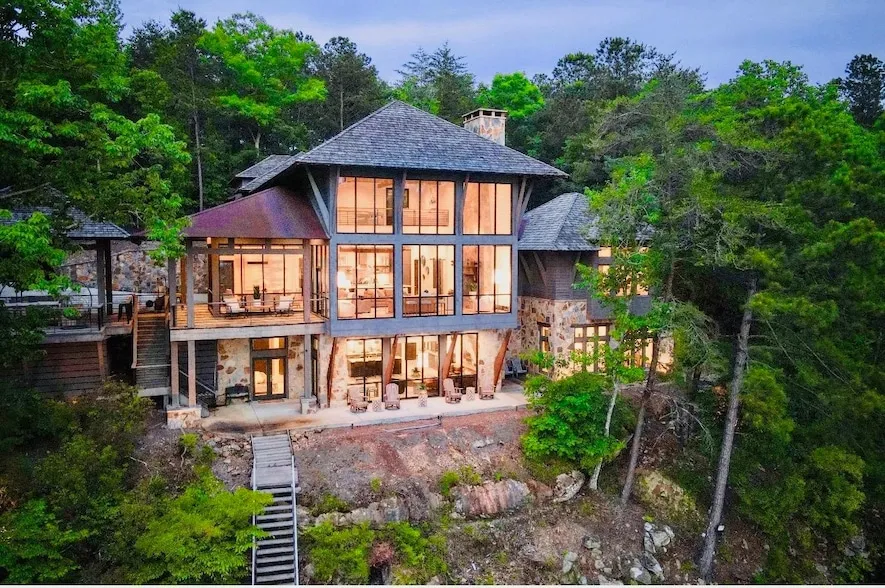 WELCOME TO THE ESTATES OF MOSS ROCK POINTE!! This double-estate lot on Ryan Creek is a Southern Living Masterpiece. Three levels offer upscale luxury and large-scale entertaining at every turn. This grand estate comes fully furnished inside and out. Featuring some of the best views on Smith Lake, the floor to ceiling windows brings the outdoors in. Offering multiple living areas, two kitchens and two laundry rooms- you have room for everyone. This custom-built estate features luxury finishes, elegant stonework, vaulted ceilings, and exquisite light fixtures. The estate offers an abundance of outdoor space- complete with a dock and outdoor fireplace. WELCOME TO SMITH LAKE!!