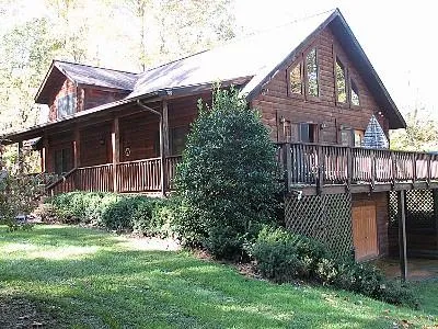 RESIDENCE: The log house was built of White Pine by Appalacian Log Homes and smells wonderful as you enter the front door from the big wrap around front porch.