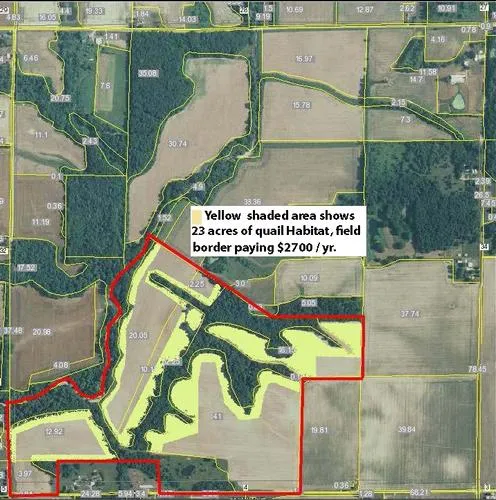 23 Tillable acres have been enrolled into a cp33 Quail Habitat field border program for wildlife enhancement. This is a big Plus for the wildlife Habitat.