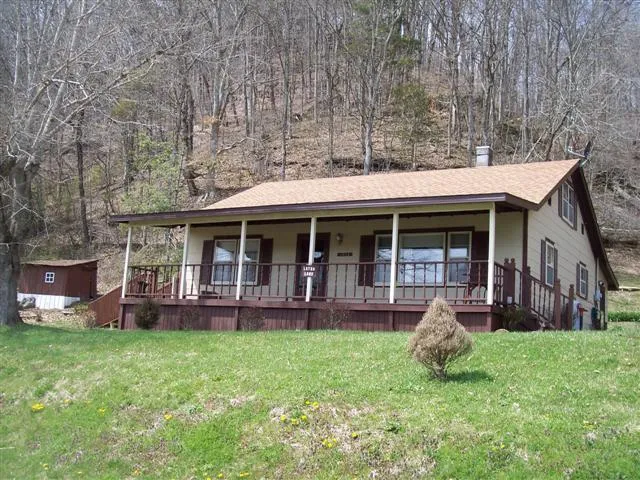 A place to enjoy nature! This home and 10 aces m/l offers beautiful wooded land, waterfalls, streams and trails! The home offers 4 bedrooms (2 up 2 down), big living room 1 baths, hardwood floors throughout (under flooring), natural woodwork, central air, propane fireplace, electric and wood heat, county water and 2 outbuildlings. Kitchen appliances, drapes and rugs all remain with the home. Plenty of parking with three driveways into the property.