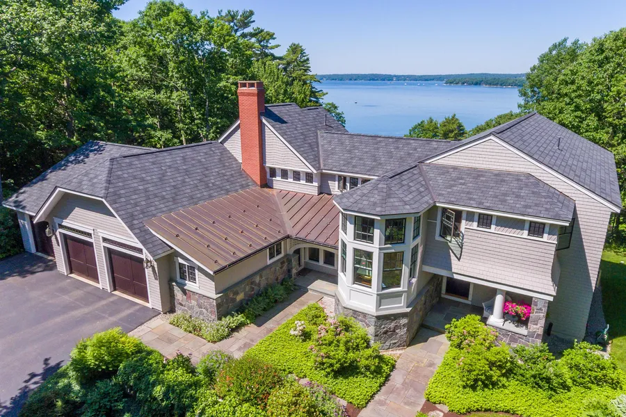 Dramatically set 100+ ft. above the ocean on a west-facing bluff & sited to enjoy breathtaking sunsets, this pristine stone & shingle-style home on 1.9 acres is surrounded by perennial gardens with 210 ft. of frontage on Casco Bay and a 225 ft. private deepwater dock & mooring. Completely renovated by the current owner, the impeccable craftsmanship of the home immediately evokes the feeling of an early 20th century seaside estate while offering the finest amenities of modern living. An open concept design allows for a seamless flow from the kitchen & family rooms to an expansive screen porch & stone terrace built 15 ft. above ground level to capture panoramic views of the bay & watch eagles fly at eye-level. With water views from almost every room, it also offers a stunning formal dining & living room, 4/5 bdrms, lower level gym & office. Just minutes to the town beach & trail system, th...