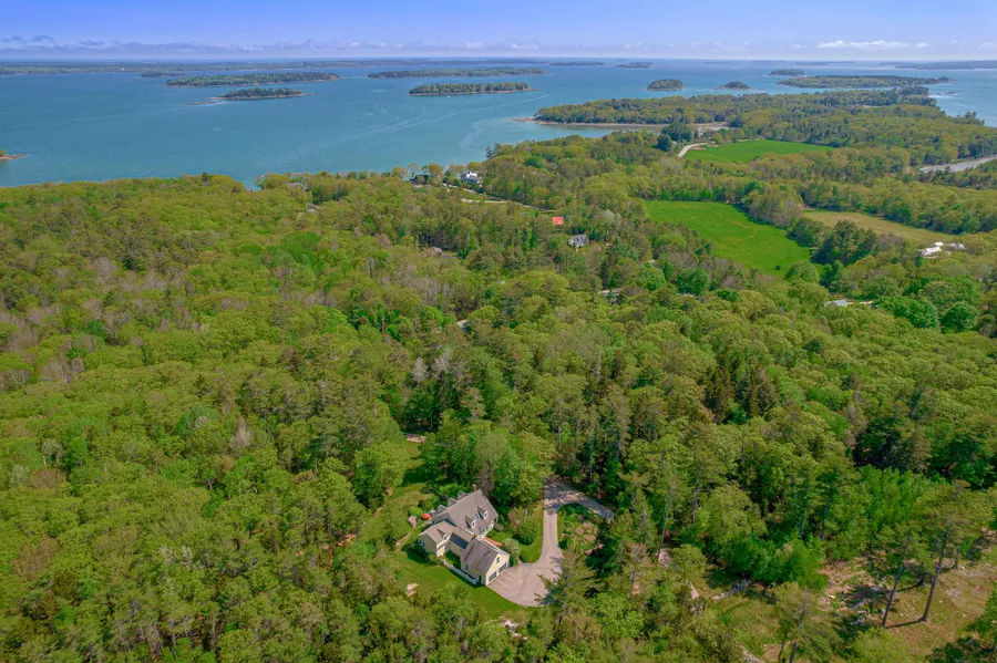 Exquisite, one-of-a-kind Contemporary Cape by renowned Hanley and Yost Custom Builders, serenely set on over three private, sunlit acres blooming with perennial gardens, flowering trees, abundant birdlife...and the natural beauty and allure of nearby Casco Bay and Wolfe's Neck State Park. Graceful refinement is found throughout an open concept floor plan that is light & airy and flanked with French doors on all sides of the home. Enjoy barbecuing on a bluestone patio by the kitchen, or have coffee on a deck near the dining area overlooking vegetable gardens and fragrant viburnum shrubs. A custom white kitchen with a walk-in pantry is designed for today's buyer with a cozy breakfast nook and additional seating area for chatting with family or guests while preparing meals. For those seeking single-level living, there's a first-floor office and lovely master bedroom suite, also with French doors to the yard. The second level is welcoming and versatile with two additional bedrooms, a newly renovated Bonus room, game room, craft room, and stunning open loft space. Don't miss this special property only 25 minutes to Portland and embrace the lifestyle you've been dreaming of.