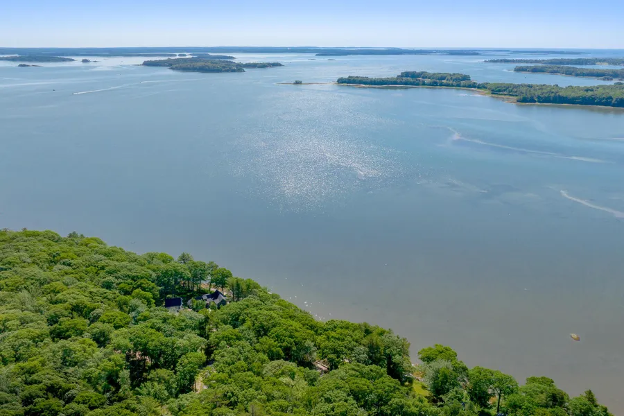 This lovely Shingle style is being sold along with a separately deeded, newly renovated guest cottage sitting at the water's edge. Two very special properties privately nestled in the pines overlooking Casco Bay, with the ability to moor your boat steps from your door. This versatile design offers an ideal floor plan for visiting guests and family members, an au pair suite, an in-home office, or a great rental opportunity! The main house has 3 bedrooms, 3 full baths, multiple family rooms, and several expansive decks overlooking the water. The charming one-bedroom guest cottage has a custom kitchen and family room with a fireplace, a garden patio, and windows across the entire front of the house with breathtaking views. Located just 10 minutes to Yarmouth Village and its award-winning schools, and only 25 minutes to Portland, whether you're looking for an investment or a lifetime of memo...