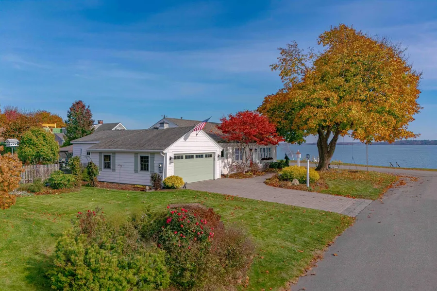 Beautifully sited on a prime oceanfront corner lot with a private dock in one of Falmouth's most desirable neighborhoods, this single-level home awaits those ready to downsize - and enhance their lifestyle. With 144 feet of protected water frontage, the sunlit .47-acre property boasts mature trees, vibrant perennial gardens, and an expansive stone patio. A backyard outdoor oasis sets the stage for memorable gatherings, from lively celebrations to intimate al fresco dinners. Begin your day lounging under the gazebos with coffee as the sun glistens like diamonds across the water, or unwind with evening cocktails as moonlight shimmers silver across Casco Bay. Picture yourself at the dock's edge, taking in sweeping views of nearby islands, the Portland skyline, or a private front-row seat to the 4th of July fireworks. The calm, protected waters make ideal swimming, fishing, kayaking, and paddleboarding just steps from your door. Inside, this home wraps you in a warm embrace, with rooms filled with charm and character, including a spacious living room with a fireplace and far-reaching water views, a cozy den or office, and a sunroom brimming with light. Pristine, impeccably maintained, and adorned with quality appointments, the home also offers maintenance-free siding and windows for turn-key living. With Falmouth's shopping, restaurants, and country clubs minutes away and just ten minutes to Portland, this rare offering is ready to welcome you to your next exciting chapter by the sea.