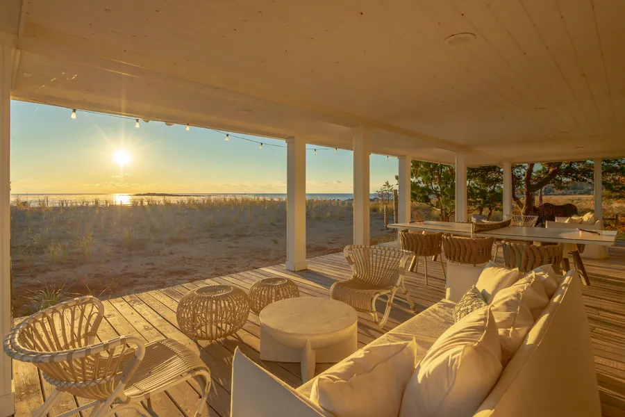 Experience the pinnacle of beachfront living in Maine on 4.3 private acres and 5,705 SF of living square footage with 6 bedrooms and 5.5 baths within the exclusive Prouts Neck community. This extraordinary property boasts breathtaking ocean views, miles of pristine beach, and a tranquil pond in the backyard, creating a unique coastal sanctuary. The home has been elegantly transformed with a contemporary, minimalist design. Enter the sleek kitchen, a perfect blend of functionality and style, which seamlessly flows into a sunlit living room with soaring vaulted ceilings. The open-concept layout is ideal for modern living, while a covered porch extends your space outdoors, offering a perfect spot for dining, lounging, and enjoying the ocean breeze. Multiple entertaining areas provide stunning views that shift with the tide.