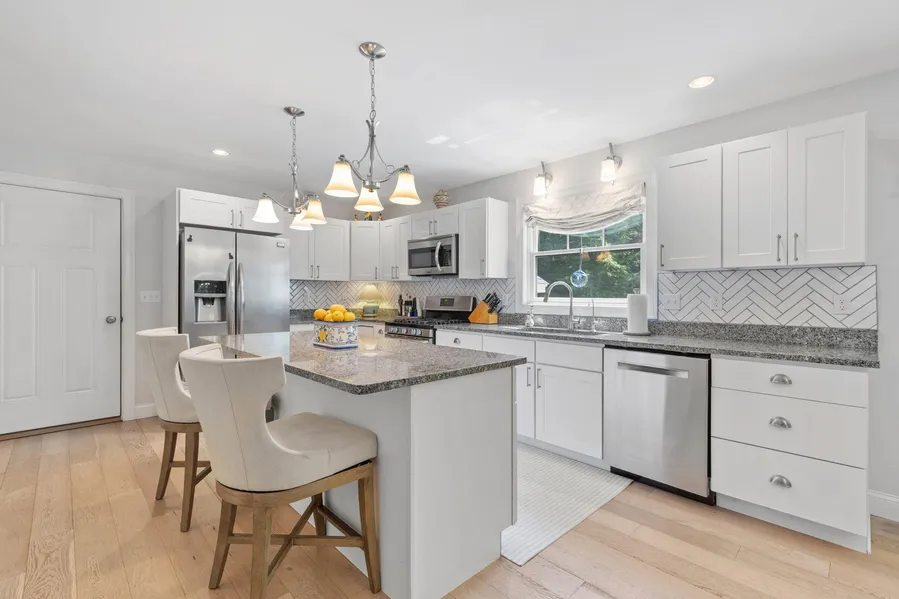 Quiet "country" living, yet, in a real neighborhood AND close to everything... schools, medical services, grocery shopping, stores, and major roadways! You CAN have it all in this custom-built, superior quality home abutting 300 conserved acres with miles of trails (Hadlock Community Forest). Property features open kitchen with herringbone tile backsplash, granite countertops, and stainless-steel, Frigidaire Gallery appliances. Floors are beautiful Hawthorne oak, fixtures are Kohler, windows are energy-saving Anderson 400's, and siding is maintenance-free LP Smart Siding. Heat sources include baseboard heat (Veissmann boiler), heat pumps (& AC), and a lovely gas fireplace for keeping you cozy and warm! Additionally, property boasts an automatic, whole house generator. You will love hanging out in your three-season, sun room with so much natural light, and in the warmer months, on the...
