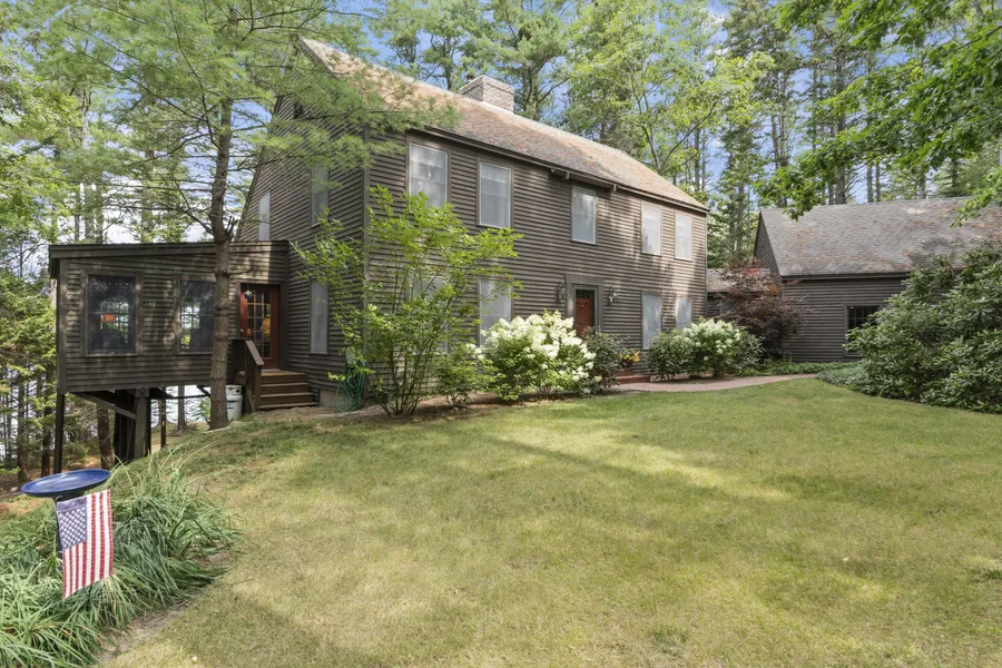 Nestled on 1.4 private acres along the serene New Meadows, this classic 1976 Saltbox-style home offers timeless charm, modern comforts, and rare water frontage. Thoughtfully designed around a central chimney, the home features 3 bedrooms and 2 baths, including a light-filled four-season sunroom perfect for enjoying Maine's beauty year-round. Inside, a stunning fireplace anchors the main living space, while the generous kitchen impresses with slate countertops, double ovens, and a gas cooktop — ideal for home chefs and entertaining alike. The attached two-car garage provides convenience and storage. Enjoy ultimate privacy in a quiet, natural setting, just minutes from Harpswell's beloved coastal amenities. This is a rare opportunity to own a truly special waterfront property in one of Maine's most desirable communities. RE/MAX Riverside (207)725-8505. Sue Spann and Darlene Chalmers, listing agents.