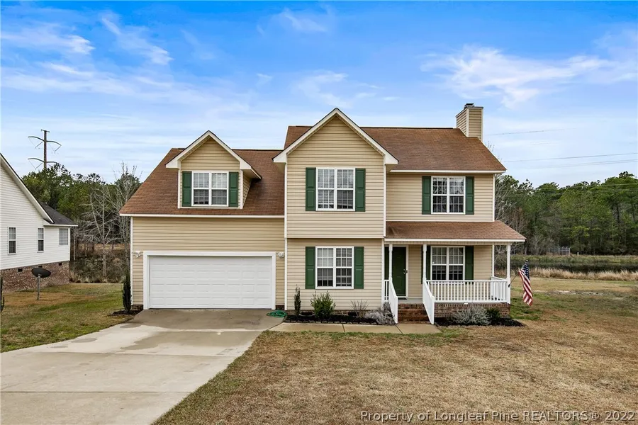 Waterfront home within minutes of Fort Bragg! Three bedrooms, PLUS an oversized bonus room with office nook. Maintenance free laminate on first floor. Open living room with fireplace, breakfast nook and formal dining room. Kitchen includes granite counter tops, stainless steel appliances, backsplash and a gorgeous view of the lake from the kitchen sink. Half bath downstairs. All bedrooms and laundry located upstairs. Owners suite includes walk-in closet and garden tub. Large deck overlooking the lake, great for grilling and entertaining. Community features a park with dock for fishing and kayak launching.