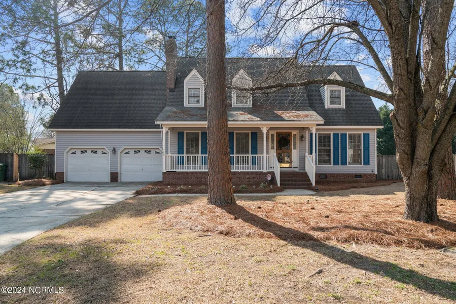 This charming two-story, three-bedroom home with a bonus room is nestled in a quiet cul-de-sac in Hope Mills, North Carolina. The primary suite is conveniently located on the first floor. As you step inside, and go upstairs you'll find two additional bedrooms and a bonus room that can be transformed into a cozy den, home office, or playroom. The screened porch provides a tranquil space to relax and unwind, overlooking a huge deck and a massive backyard with a sparkling swimming pool. It's like having your very own private park right outside your door. The kitchen is equipped with stainless steel appliances, and the washer and dryer will all convey with the property. The septic system was inspected last fall and a new D box has been installed for added peace of mind. The backyard is fully fenced, with plans to move the fence to the side property line if buyer does not wish to purchase adjoining lot. The home is located just 2 1/2 miles from Jack Britt School and the Traemore Village shopping center, which features a Harris Teeter and various shops and restaurants. Mature trees surround the property, adding to the serene atmosphere. There is a termite bond with Canadys. Home is wired with a security system that new owners can activate if they wish. The house boasts 2 1/2 baths, generously sized bedrooms, and a wood-burning fireplace in the living room. Additional features include a formal dining room, hardwood floors, and tile in the kitchen. A welcoming southern front porch greets you as you arrive, and the spacious lot spans 3/4 of an acre. The old swing set will be removed. The pool liner is new, and the sellers will leave the pool cleaning tools and supplies for your convenience. A two-car garage provides ample parking and storage space. Don't miss the opportunity to make this delightful home your own in the heart of Hope Mills, North Carolina. Home and carpets have been professionally cleaned 2/21- **dining room chandelier will be repaired tues Adjoining .30 acre lot is also for sale for $25,000- sellers are having it surveyed and will move the fence to divide the property