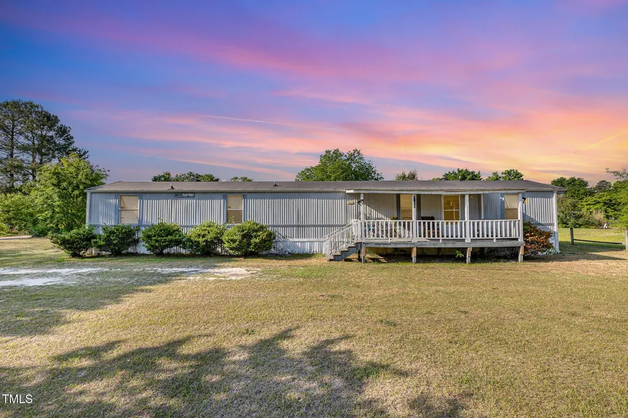Move-in ready affordable single-family manufactured home on 0.56 acres lot. Beautiful mature flowering trees line the property for privacy and adorn the front yard! No lot fees as you would be the land owner! Brand new HVAC installed Jan2025. Upgrades include dry wall throughout, 2 large bedrooms with 2 full baths, solid oak wood cabinets throughout, 2 French doors in kitchen breakfast area leading out to large covered back porch 19.11 x 9.6. The home also has a covered 18.1 x.11.1 front porch. Enjoy the yard with a rustic split rail fence lining the front and side of the property. The back yard is large with plenty of space for kids and dogs to run and play. There is an 11.1 x 9.5 shed in the backyard providing extra storage. There are no records of the last time the septic was pumped. No permit available for septic; however, previous owner stated the home was originally a 3 bedroom/2 bath home that he remodeled. (Previous owner was a licensed contractor and local owner of a residential construction company.) The property has successfully leased for over 8 years. Good investment property. This property is one of the nicest and largest lots in Gilcrest Sands. Property and home are being sold AS IS. There is no other deal in Hope Mills like this affordable gem! Photos of property lines are approximations and sellers encourage the buyers to obtain a new survey. Seller is a licensed real estate professional.