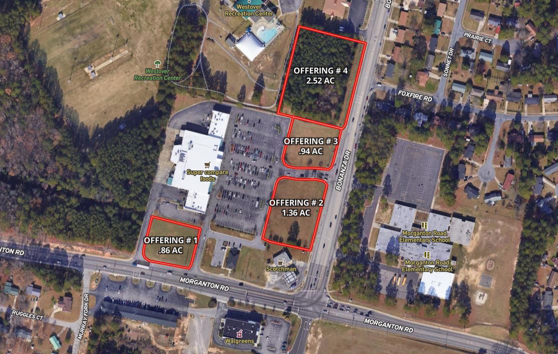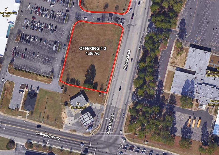 Research Parcel InformationFrom Fayetteville NC, Highway 24 West (Bragg Boulevard), Left on Highway 401 (Country Club Drive), Right on Morgantown Road. Offering # 1 is on right just past Bonanza Drive. Offering # 2, # 3, and # 4 take right off Morgantown Road onto Bonanza Drive. Lots are on left on either side of the Compare Foods of North Carolina Entrance.