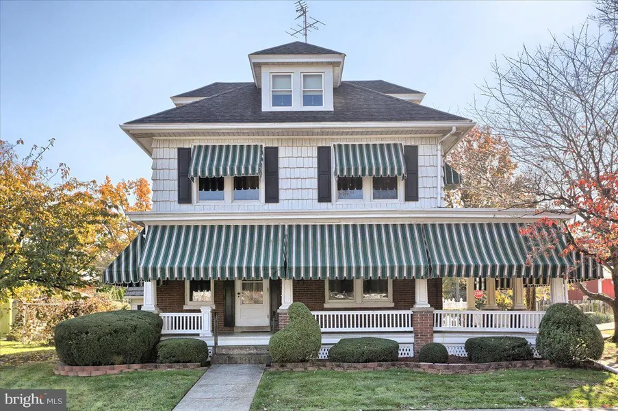 Charming 4 bedroom 2 story located in the Boro of Mechanicsburg on a level lot with a wrap around covered porch, attached 1 car garage, , 2 car detached garage and fenced back yard There is a sunroom attached to the back of of the house and the backyard has a gazebo and garden trellis. Beautiful woodwork and trim throughout the home. Home has hardwood floors in many of the rooms. Good sized kitchen with pantry as well as breakfast room , corian counters and nice cabinets. Formal dining room. Sun room is located just off the dining room. 2nd floor has 4 bedrooms and 2 additional rooms that had been used as a greenhouse and sunroom. There is also a walkout balcony accessible from the greenhouse room. There is a walk-up attic with loads of storage and has the potential to be finished. Full unfinished basement. All awnings will remain with the home as they will be taken down shortly and stored for next year. Home is heated and cooled by 3 ductless mini-split units and using an oil furnace as a backup for heat. Wood fireplace. All appliances remain with home. Well built home in a great location , good condition , with lots of potential. Home will need updates but priced accordingly.